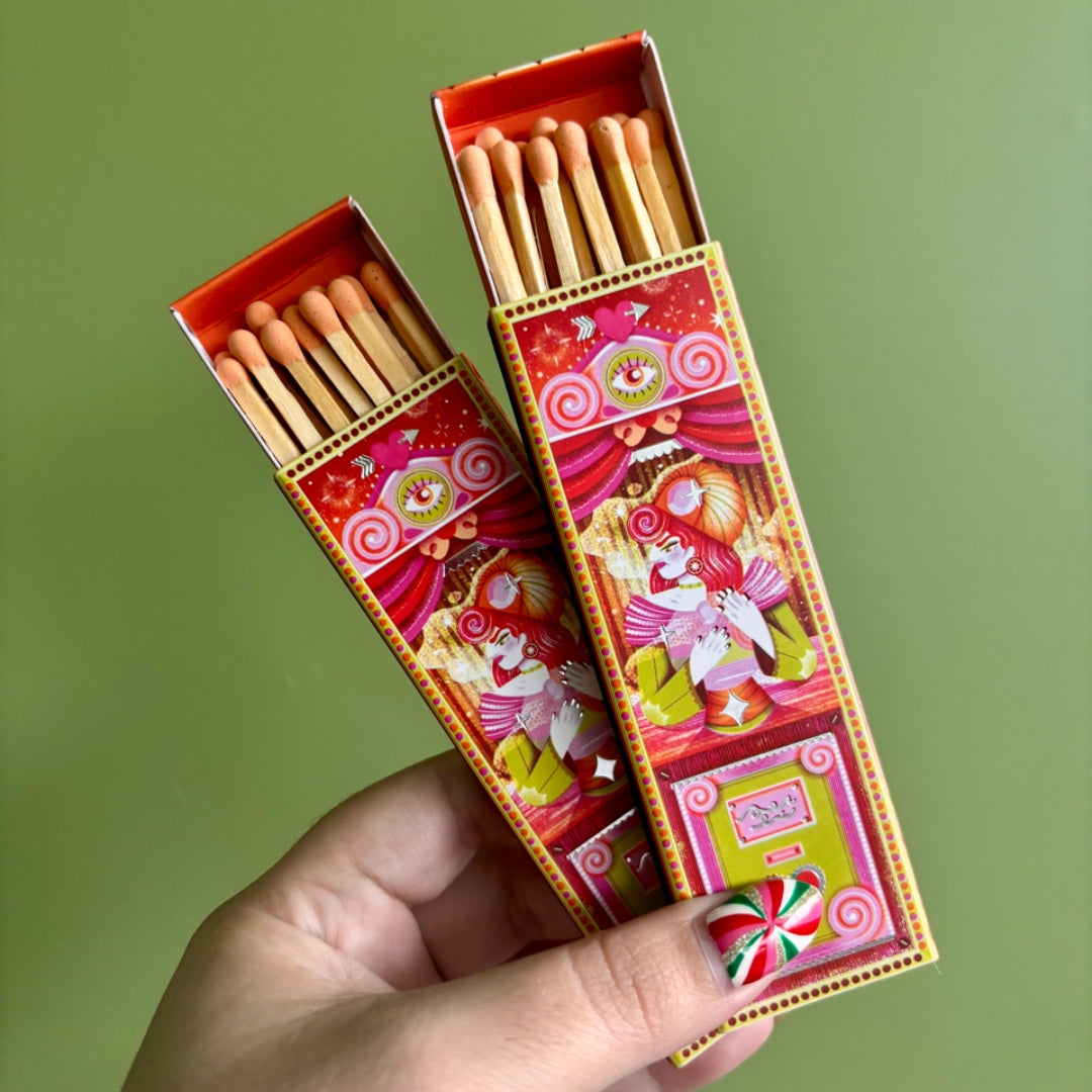 The matchbox artwork is an original illustration by the talented Jasmine Floyd.